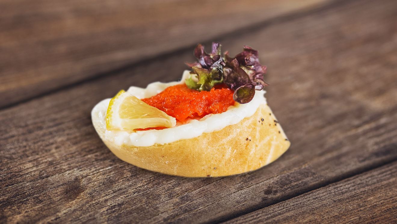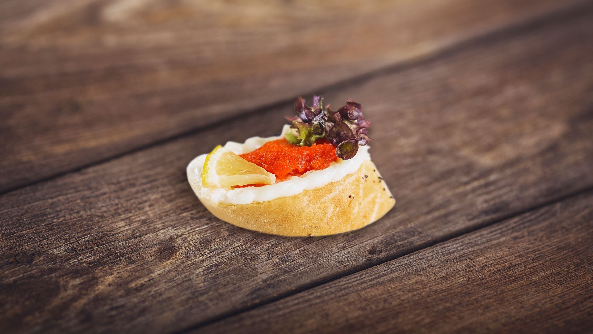 Drcená aljašská TRESKA á la losos 30 % (DRCENÁ ALJAŠSKÁ TRESKA, řepkový olej, konzervanty: E202, E211, látka zvýrazňující chuť a vůni: E621, regulátor kyselosti: kyselina citronová, citronan sodný, hroznový cukr, jedlá sůl, barviva:E120, E110 - mohou nepříznivě ovlivňovat činnost a pozornost dětí), pšeničné pečivo 30 % [(PŠENIČNÁ MOUKA, pitná voda, rostlinný olej řepkový, pekařské droždí, jedlá sůl, zlepšující přípravek (PŠENIČNÁ MOUKA, enzymy, látka zlepšující mouku: kyselina askorbová) posyp: jedlá sůl, mák], majonéza (řepkový olej, voda, VAJEČNÉ ŽLOUTKY sušené, ocet kvasný, cukr, jedlá sůl), MÁSLO, citron, salát lollo. Obsah soli max. 3,4%.